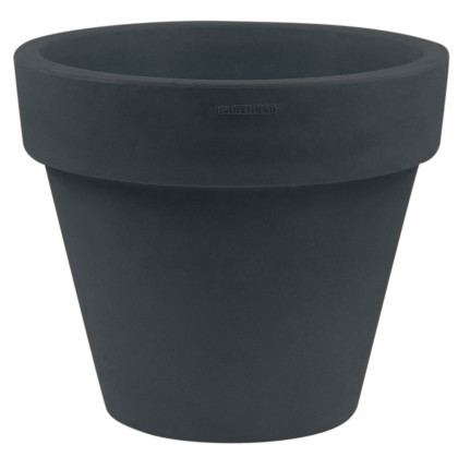 Jardinière ronde de 17 litres ou 34 litres gris anthracite 38cm x 33cm en mesures extérieures pour 17 litres et 48 x 41cm pour le 34 litres.